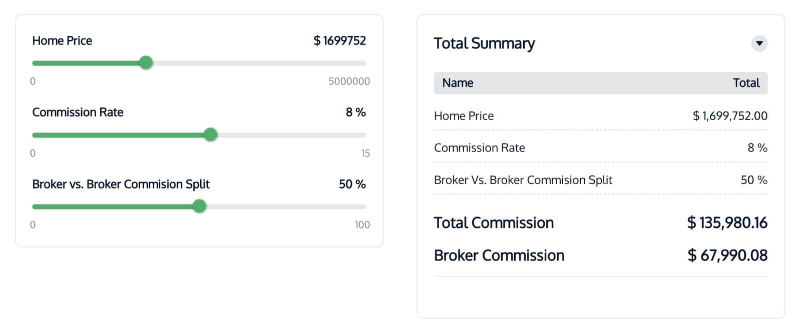 A tool for brokers like you to calculate your potential commission on a house sale. Since commission is usually the main—if not only—part of an broker's income, it also can work like a real estate broker salary calculator!